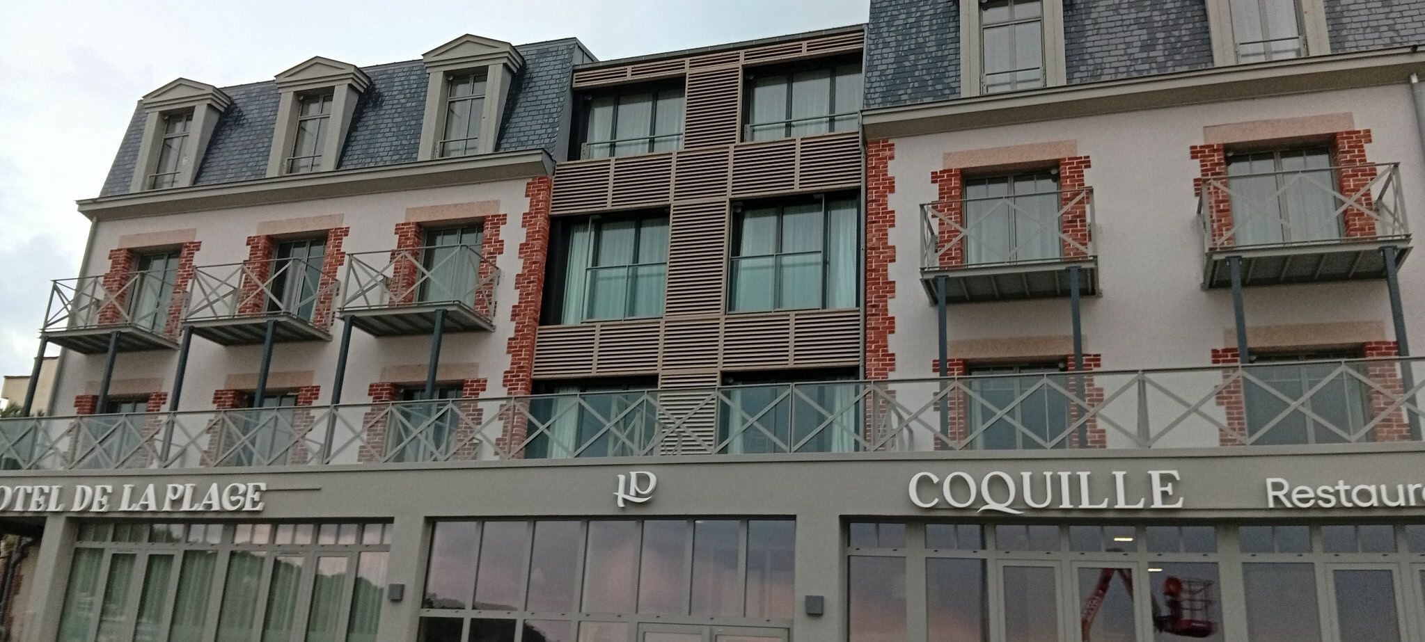 Nous intervenons à Erquy, sur la façade de l’Hôtel de la Plage, pour la fabrication et la pose de balcons métalliques sur mesure.